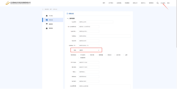 登录成功后,点击实名认证,填写企业相关信息和上传相关证件,*号项必填,填写完成后点击提交,等待审核。